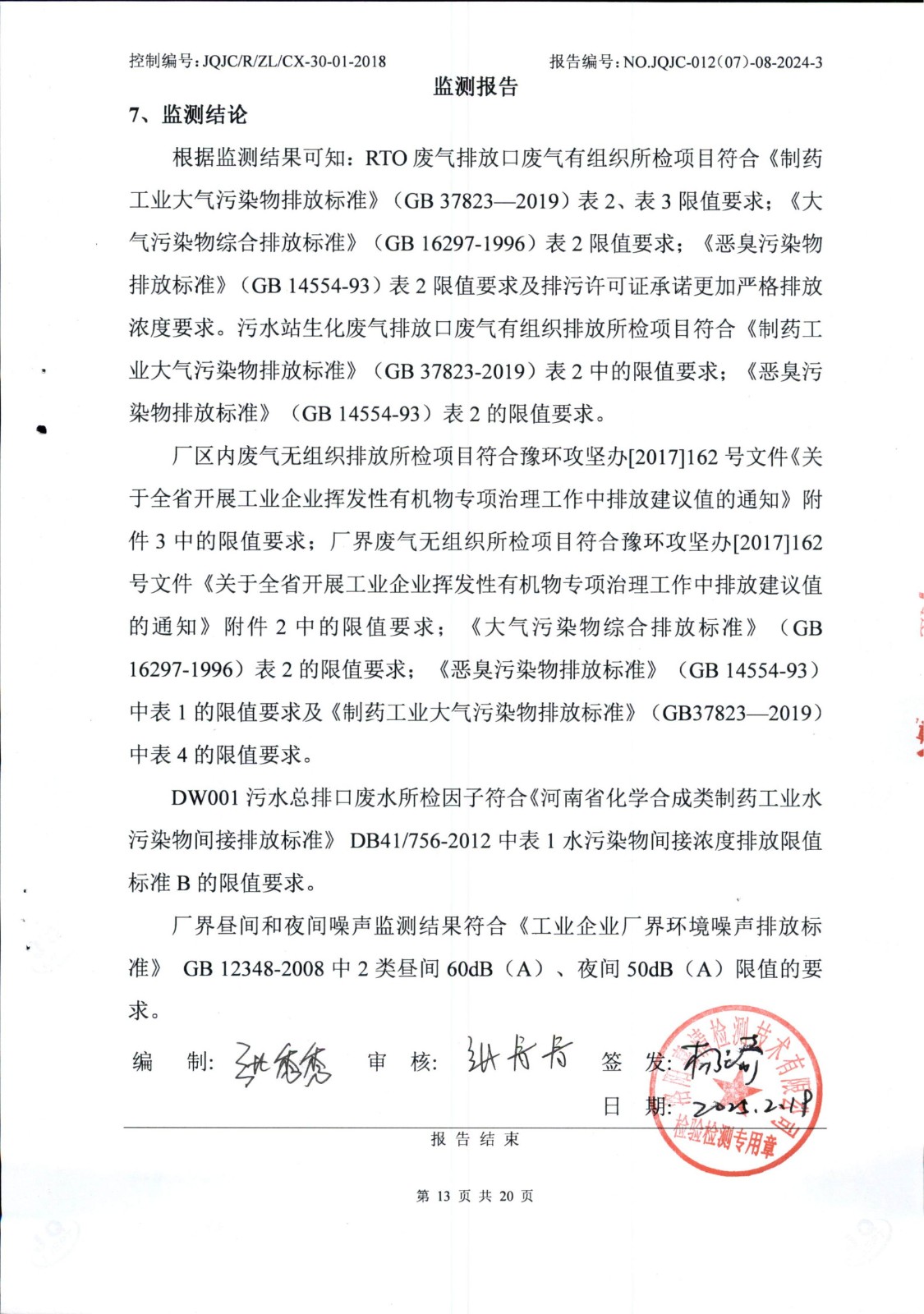 廢氣在線比對(duì)檢測(cè)報(bào)告