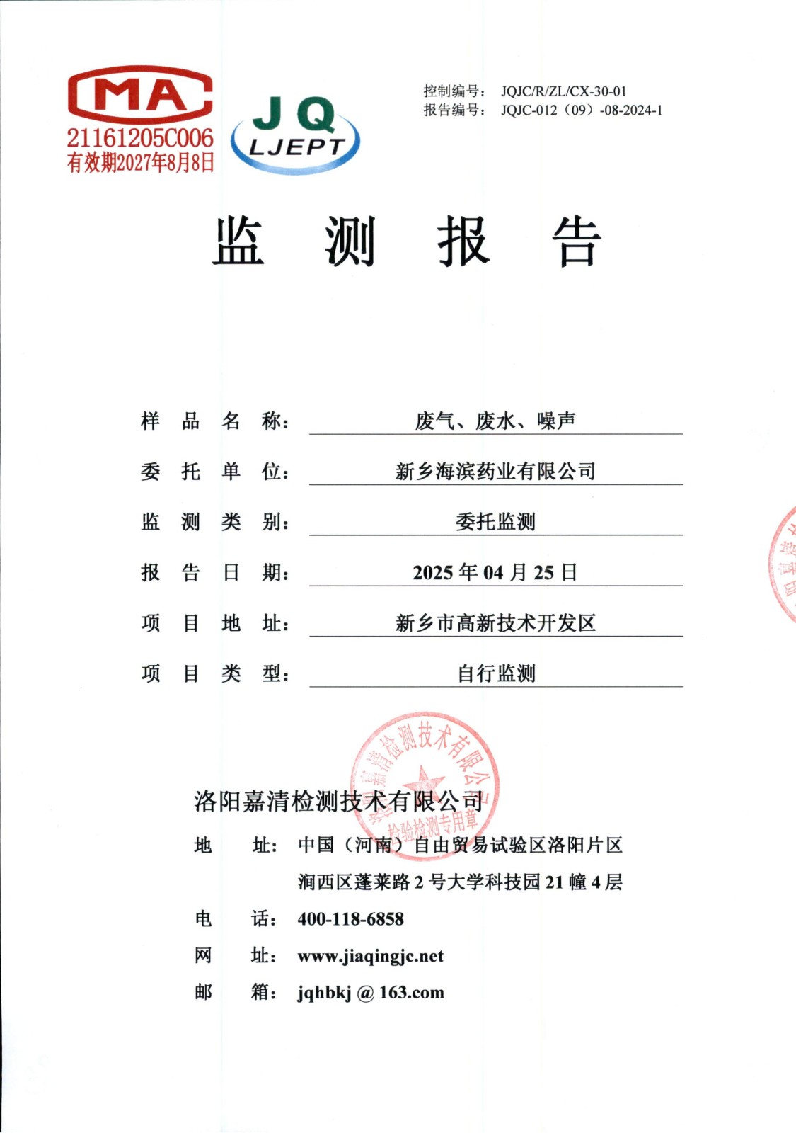 新鄉(xiāng)海濱藥業(yè)有限公司技術(shù)中心擴(kuò)建項(xiàng)目 竣工環(huán)境保護(hù)驗(yàn)收公示